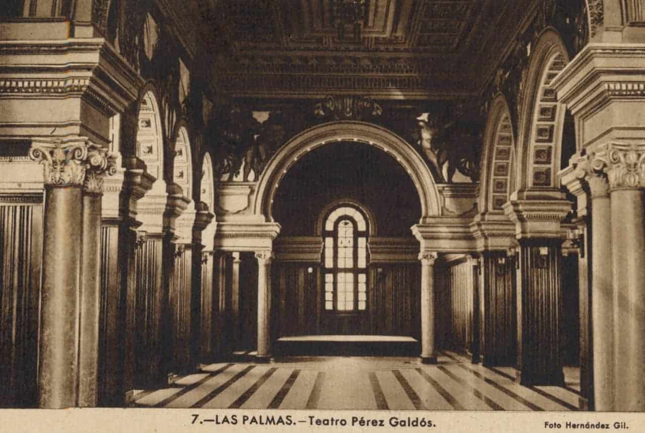 Este trabajo está, sin embargo, marcado por posteriores reformas y una fecha crucial, el 28 de junio de 1918, día en que el Teatro Pérez Galdós sufrió un incendio que dejó los gruesos muros de piedra y la estructura horizontal de madera del edificio totalmente calcinados. La reconstrucción sobre los restos del edificio comenzó en 1921 y concluyó con su inauguración en el año 1928.