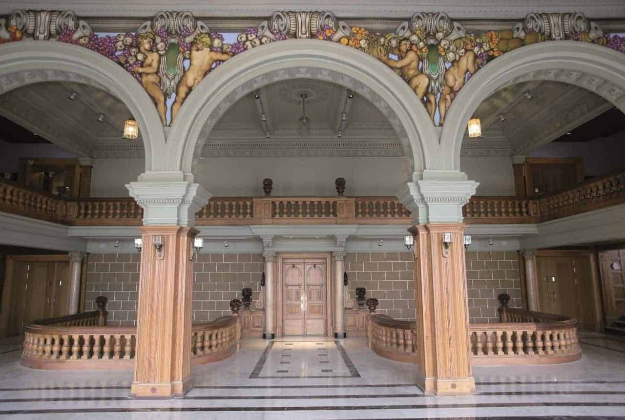 Miguel y Néstor realizaron una labor conjunta de diseño de piezas de carpintería, de yesería, elección de lámparas, revestimiento de zócalos, etc., que dio como resultado un edificio que puede ser considerado como un verdadero museo.