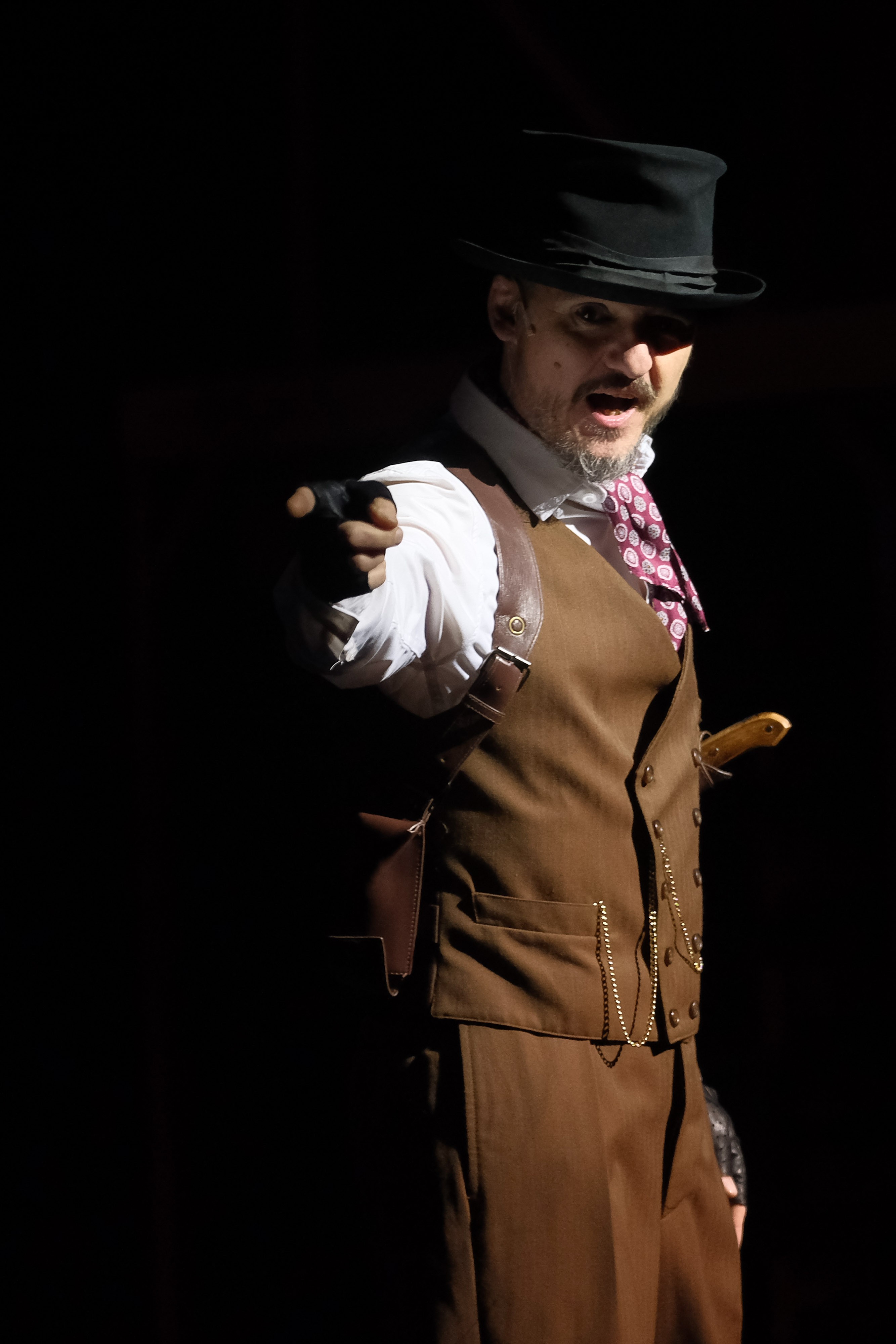 Mario Vega, quien también firma una escenografía modular de madera en la que se desarrollan las distintas escenas de este montaje de poco más de dos horas de duración, viene desde hace más de dos años, junto al director general de la Fundación Auditorio y Teatro de Las Palmas de Gran Canaria, Tilman Kuttenkeuler, persiguiendo los derechos del libreto de Bertolt Brecht (escrito en colaboración con Elisabeth Hauptmann) que fue estrenado con música de Kurt Weill en la convulsa época de finales de la década de los años 20 del siglo pasado, formulando una feroz y despiadada crítica al capitalismo. Hace un año ambos cerraron el Berlín el acuerdo definitivo que hace posible que ‘La Ópera de los Tres Centavos’ pueda estrenarse ahora “tras un trabajo titánico de traducción del texto”, avanzó Vega, quien aseguró que esta producción “de engranaje vodevilesco es la más coral de cuantas ha afrontado unahoramenos hasta la fecha”.