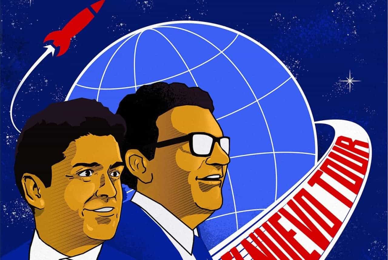 Miguel Maldonado y Facu Díaz vuelven a la carretera con El Nuevo Tour, un espectáculo de comedia que recoge y amplía el espíritu alternativo y crítico con el que llevan más de cinco años trabajando juntos. El Nuevo Tour, que es como han decidido llamarlo en un alarde de originalidad y frescura, es una mezcla de lo político y lo frívolo, un show en el que voluntaria o involuntariamente terminarán demostrando lo difusa que es la línea entre ambos conceptos. Estos dos charlatanes recorrerán de nuevo teatros, auditorios y palacios de congresos de toda España para poner los puntos sobre las íes, con el convencimiento de que no tienen ni la más mínima idea de lo que están diciendo.