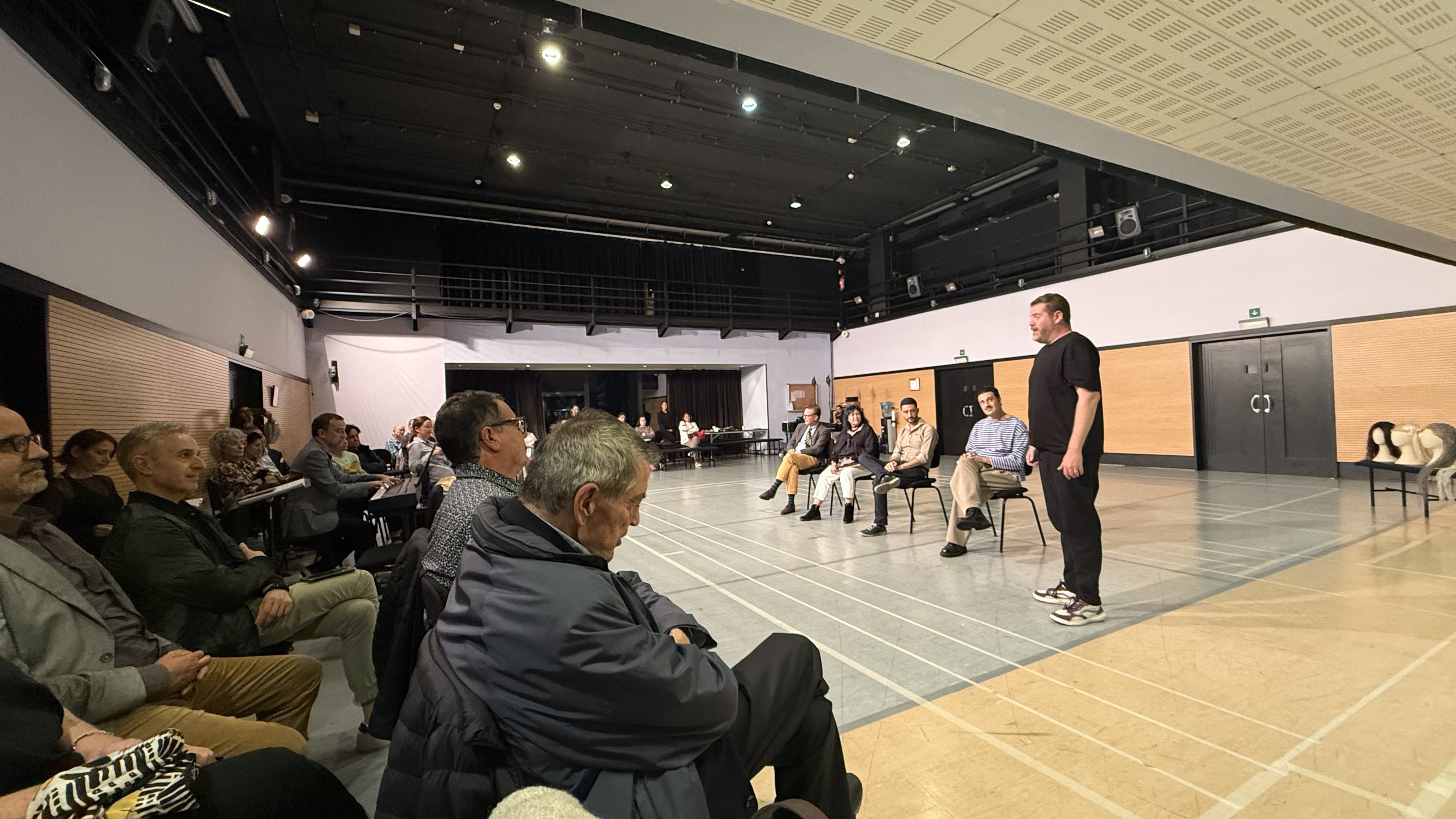 1ª Fila continúa su cometido de estrechar distancias entre el público y la creación artística. En la tarde del 26 de noviembre, en la Sala de Ensayos del Teatro Pérez Galdós, un grupo reducido de personas pudo disfrutar de una experiencia cercana e inmersiva que les permitió adentrarse en el proceso creativo de la producción.