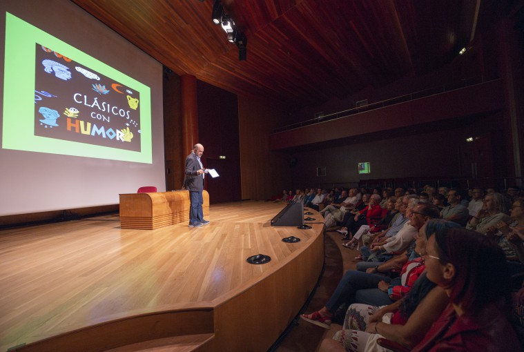 El humorista y filólogo Paco Pómez, vuelve a subirse al escenario de la Sala de Cámara del Auditorio Alfredo Kraus dentro del ciclo 'Clásicos con Humor'. En un formato de charlas amenas donde la risa está más que garantizada, el componente de Piedra Pómez presenta tres citas donde la cultura grecorromana se adentra en una propuesta que marida el humor con el rigor, "pero no rigor mortis", tal y como lo define Pómez.